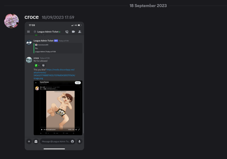 moral of the story: when you, as an admin get exposed for dating a minor or asking one if they wanna have sex when you're over 20, you only get your admin removed and you dont get banned. if youre lucky you keep access to some admin chats for ~half a year and you continue being friends with admins